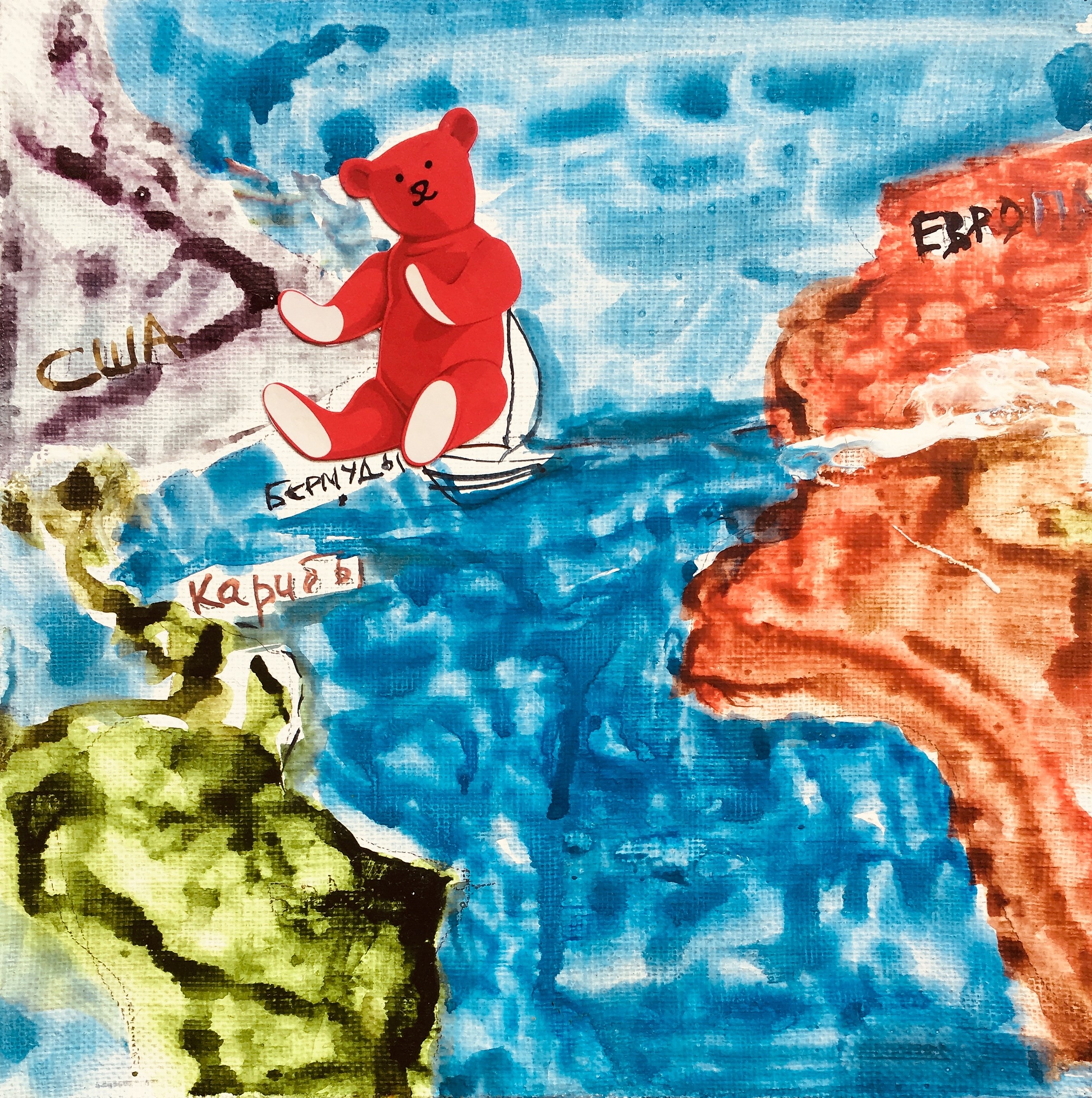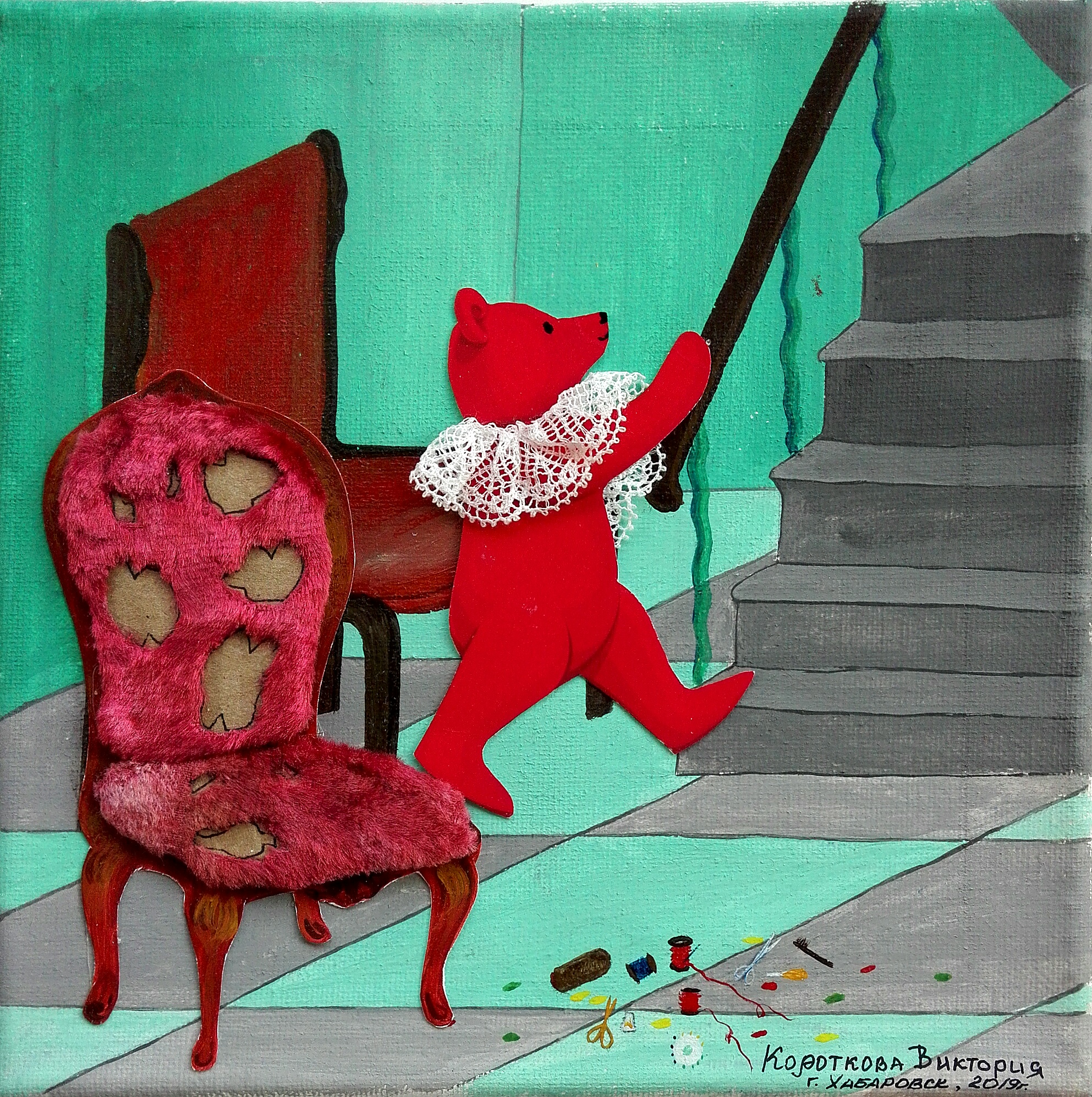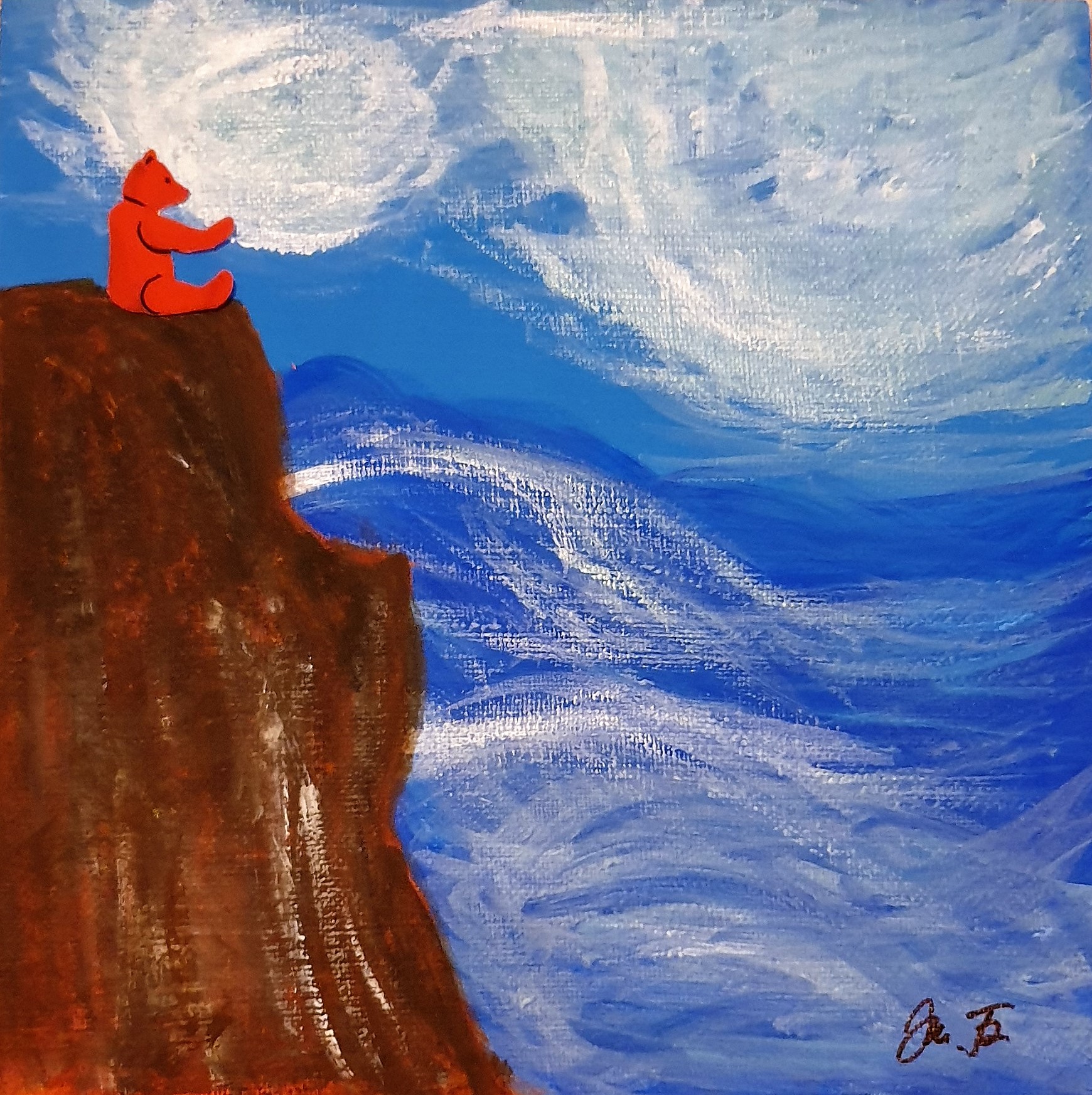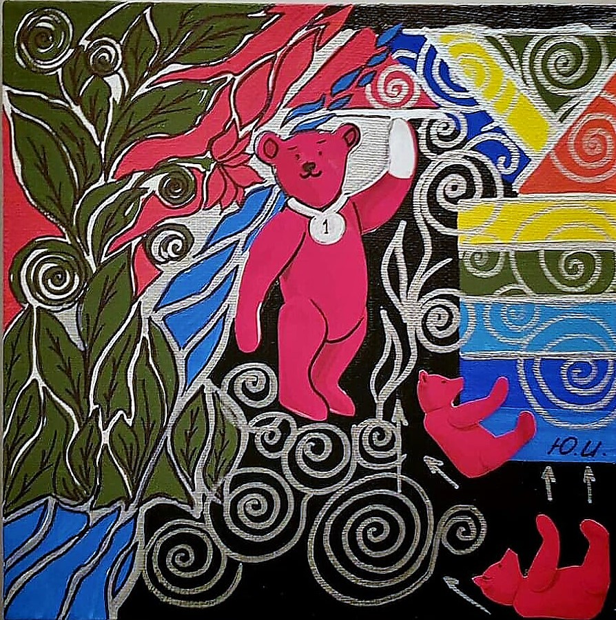 Встречайте еще одну капельку в поток силы Красного мишки. Моя картина называется: "ВЫХОД ИЗ ЗОНЫ КОМФОРТА ТАМ" или "КТО ЕЩЁ СИДИТ НА ПОПЕ…