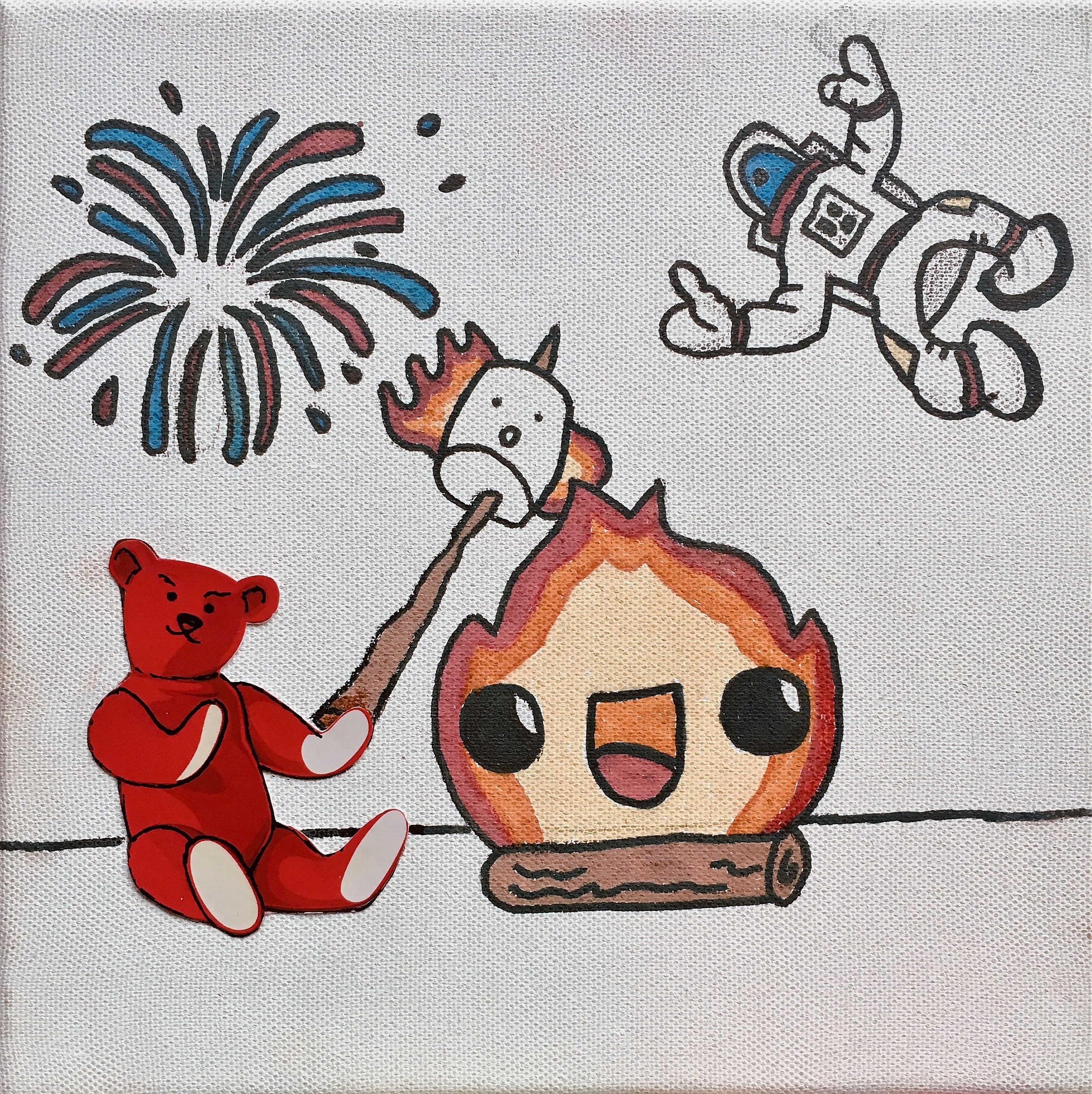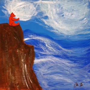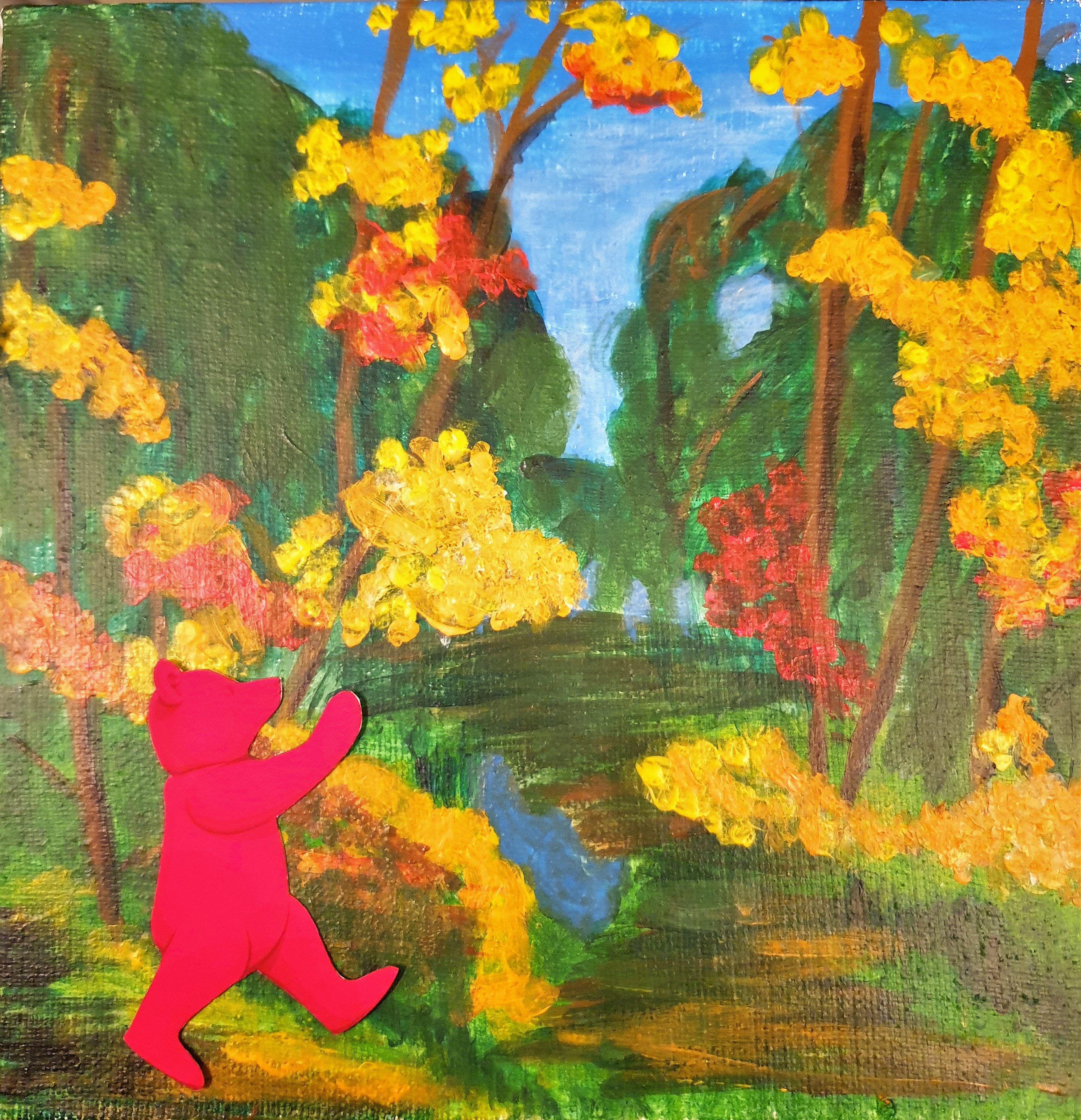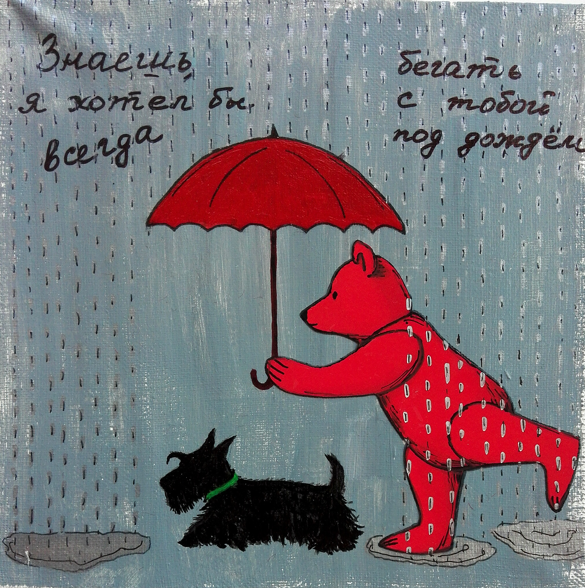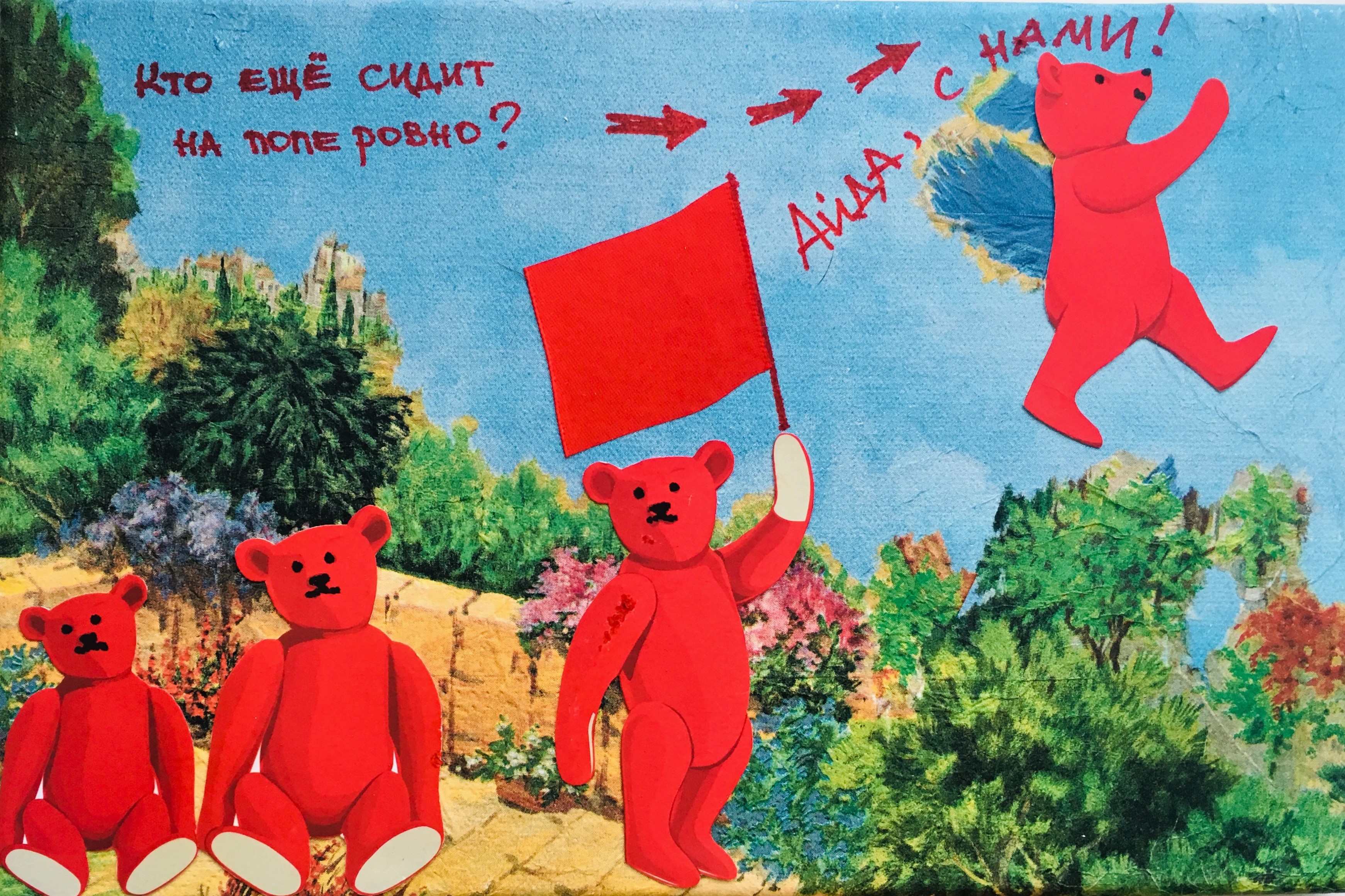 Встречайте еще одну капельку в поток силы Красного мишки. Моя картина называется: "ВЫХОД ИЗ ЗОНЫ КОМФОРТА ТАМ" или "КТО ЕЩЁ СИДИТ НА ПОПЕ…