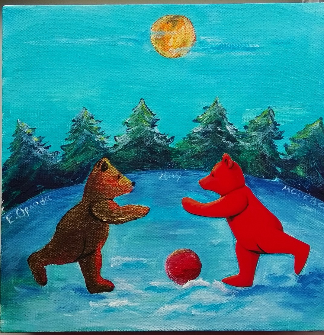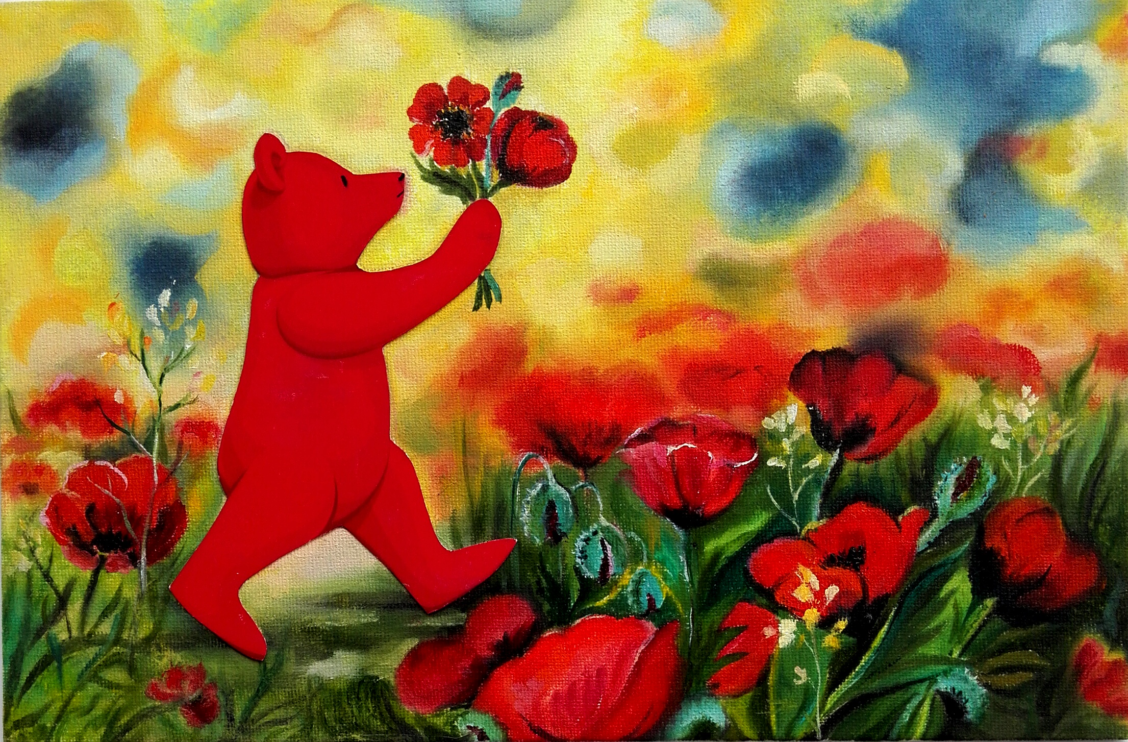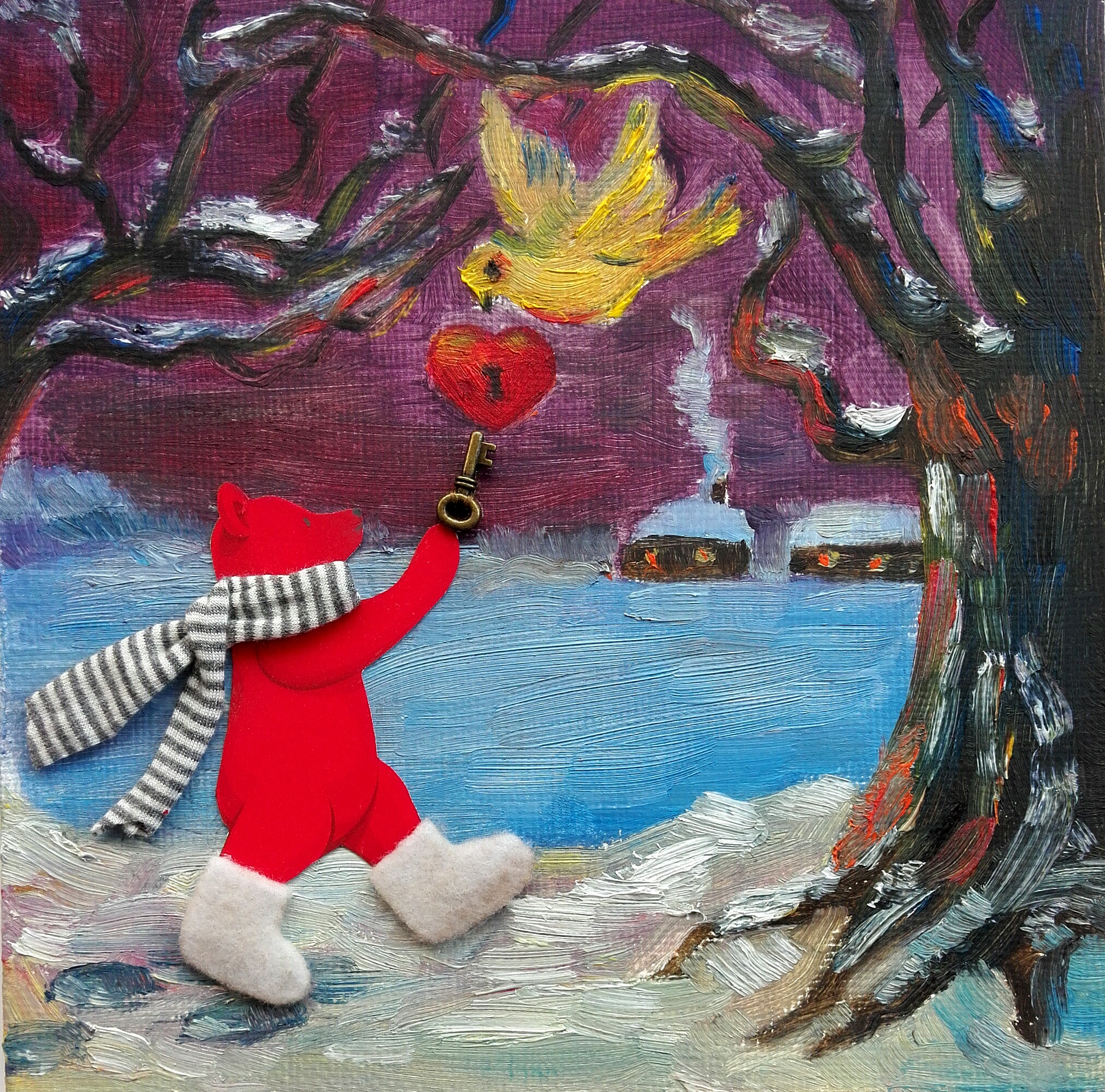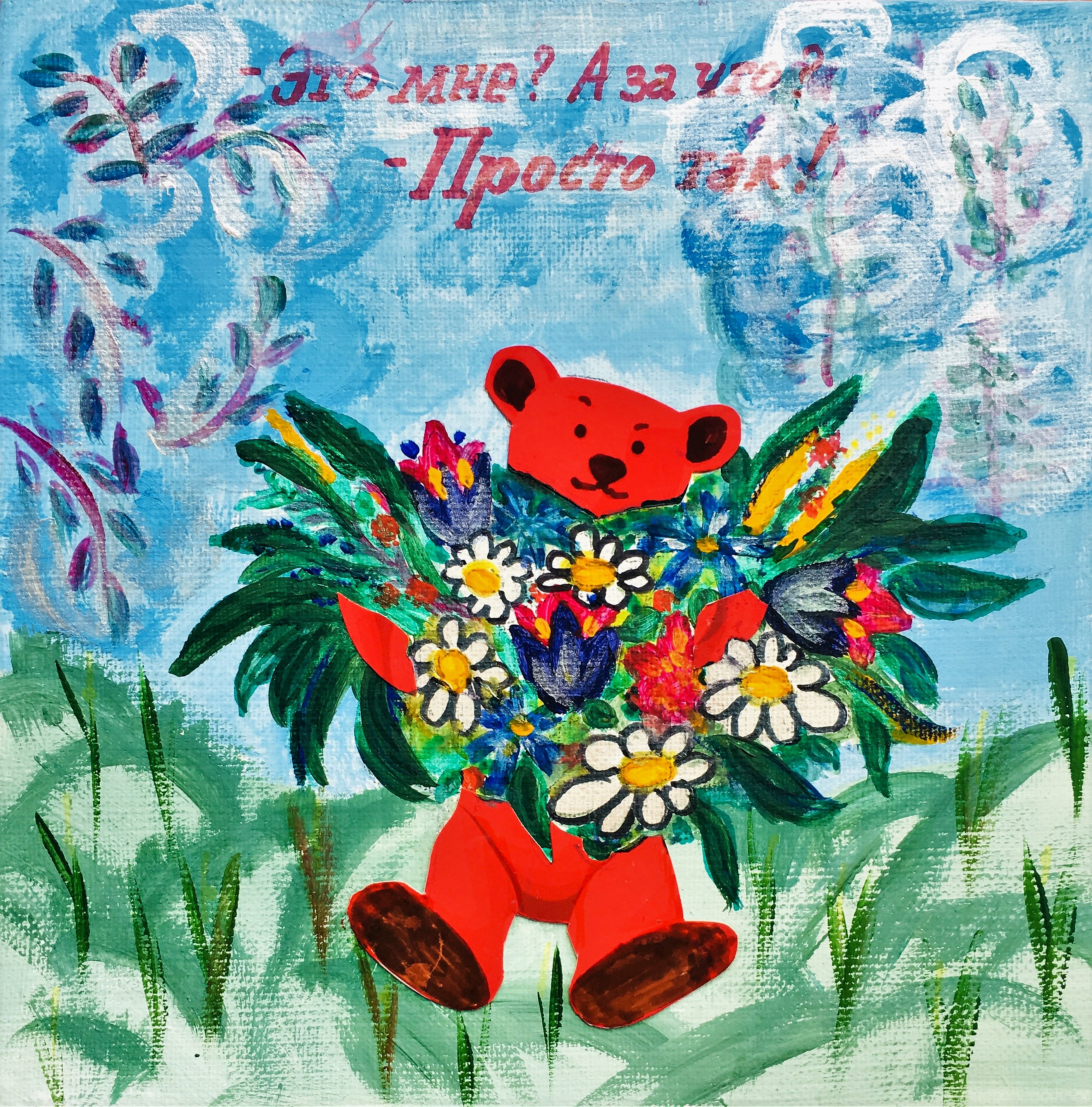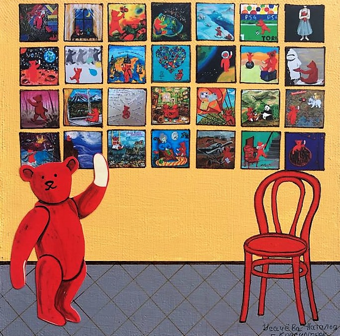 Главный герой всех картин и историй – Красный мишка©, персонаж музея-мастерской «Друг мой мишка» (г. Красногорск) Наташи Усачевой.