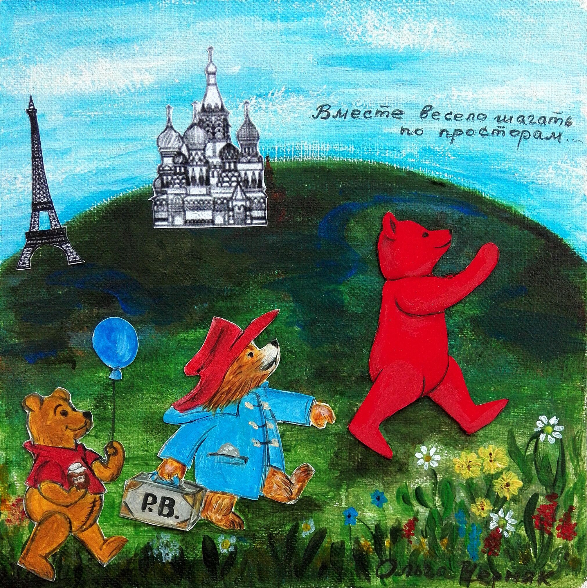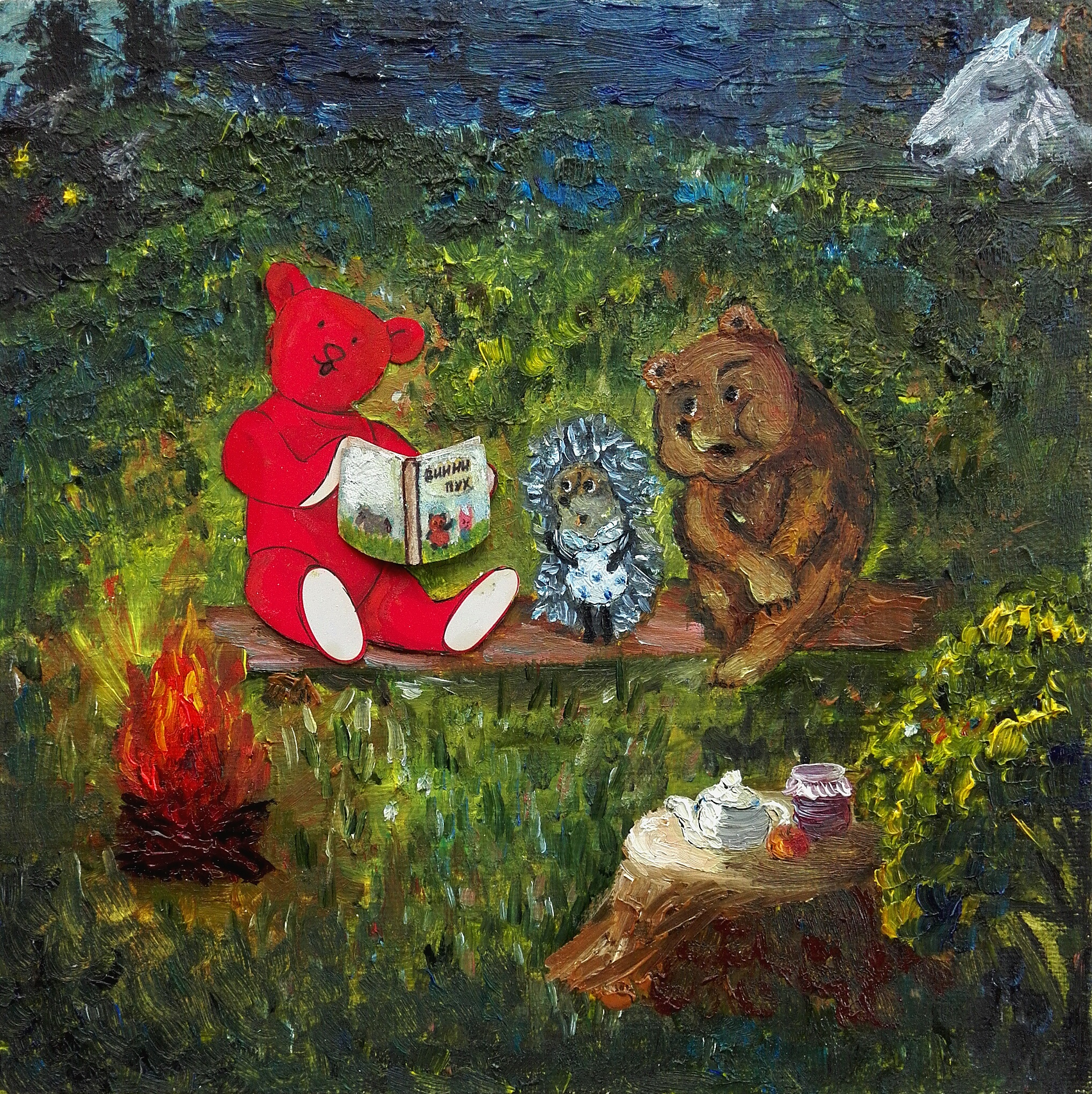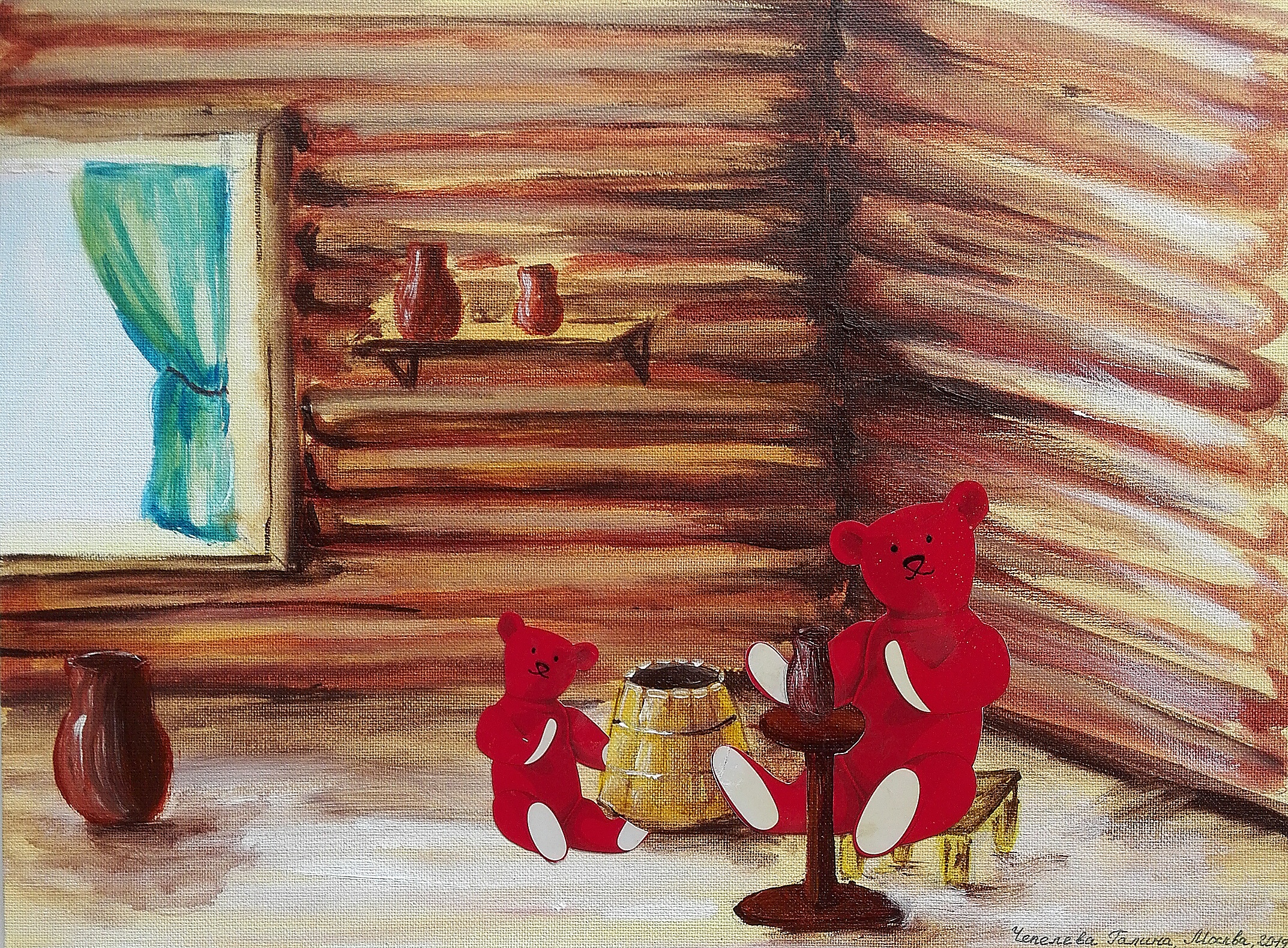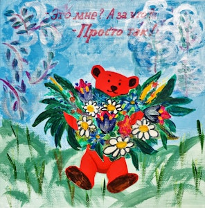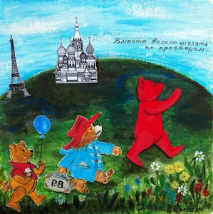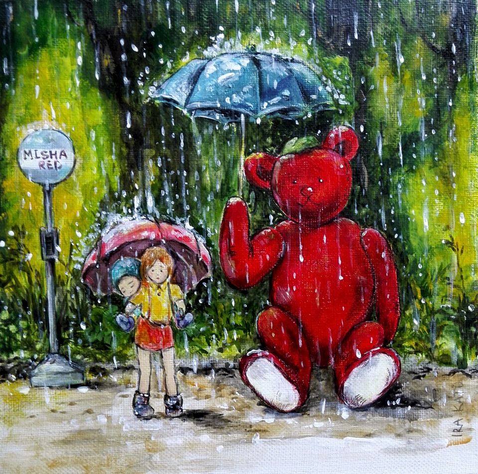 Главный герой всех картин и историй – Красный мишка©, персонаж музея-мастерской «Друг мой мишка» (г. Красногорск) Наташи Усачевой.