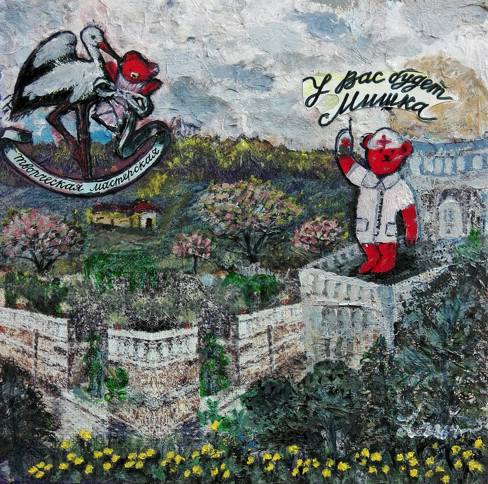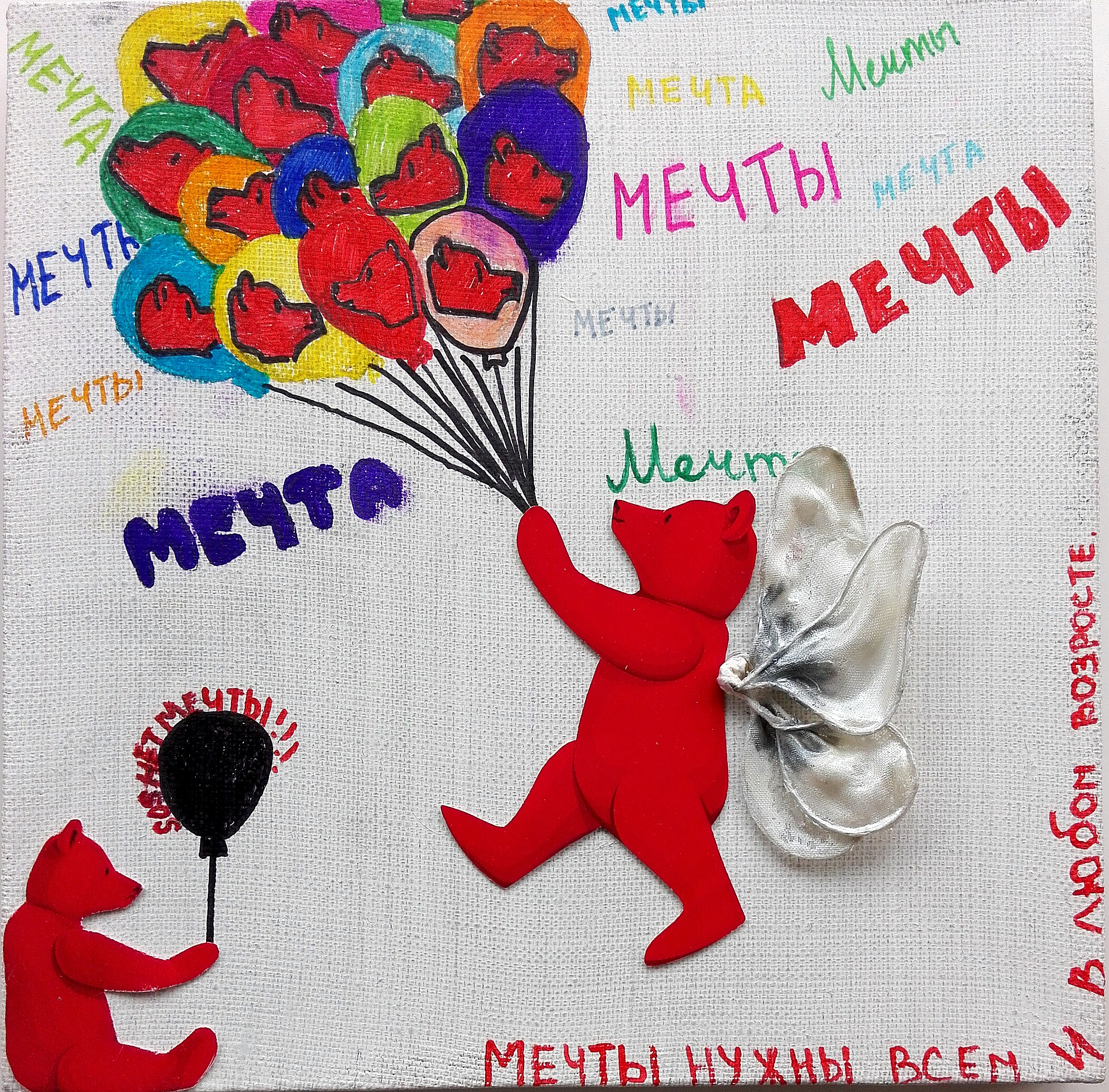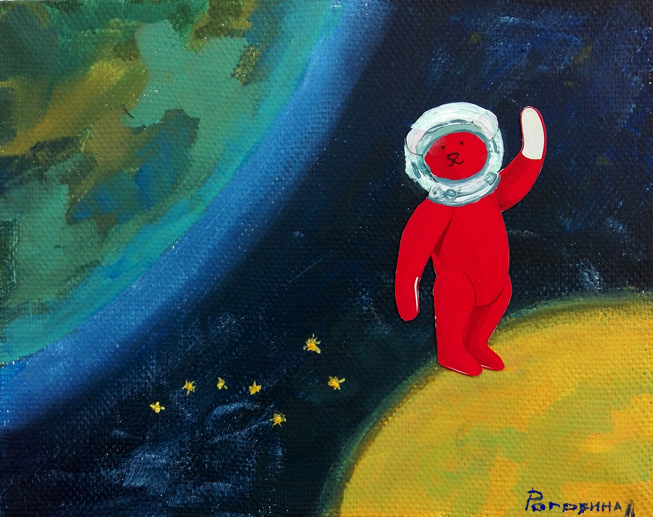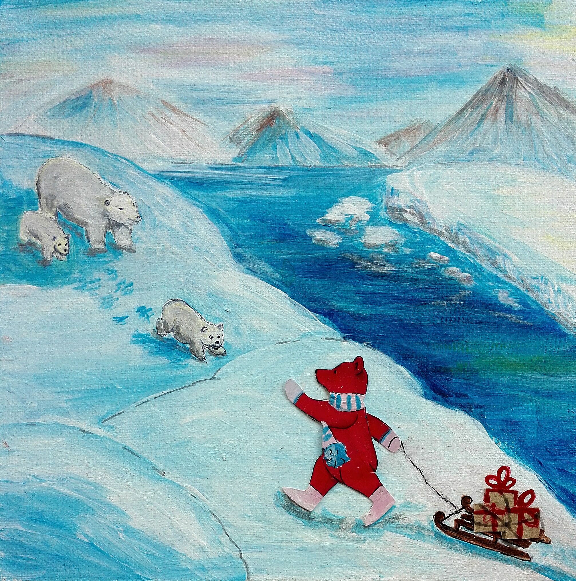 Главный герой всех картин и историй – Красный мишка©, персонаж музея-мастерской «Друг мой мишка» (г. Красногорск) Наташи Усачевой.