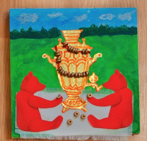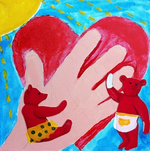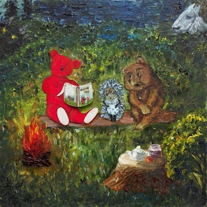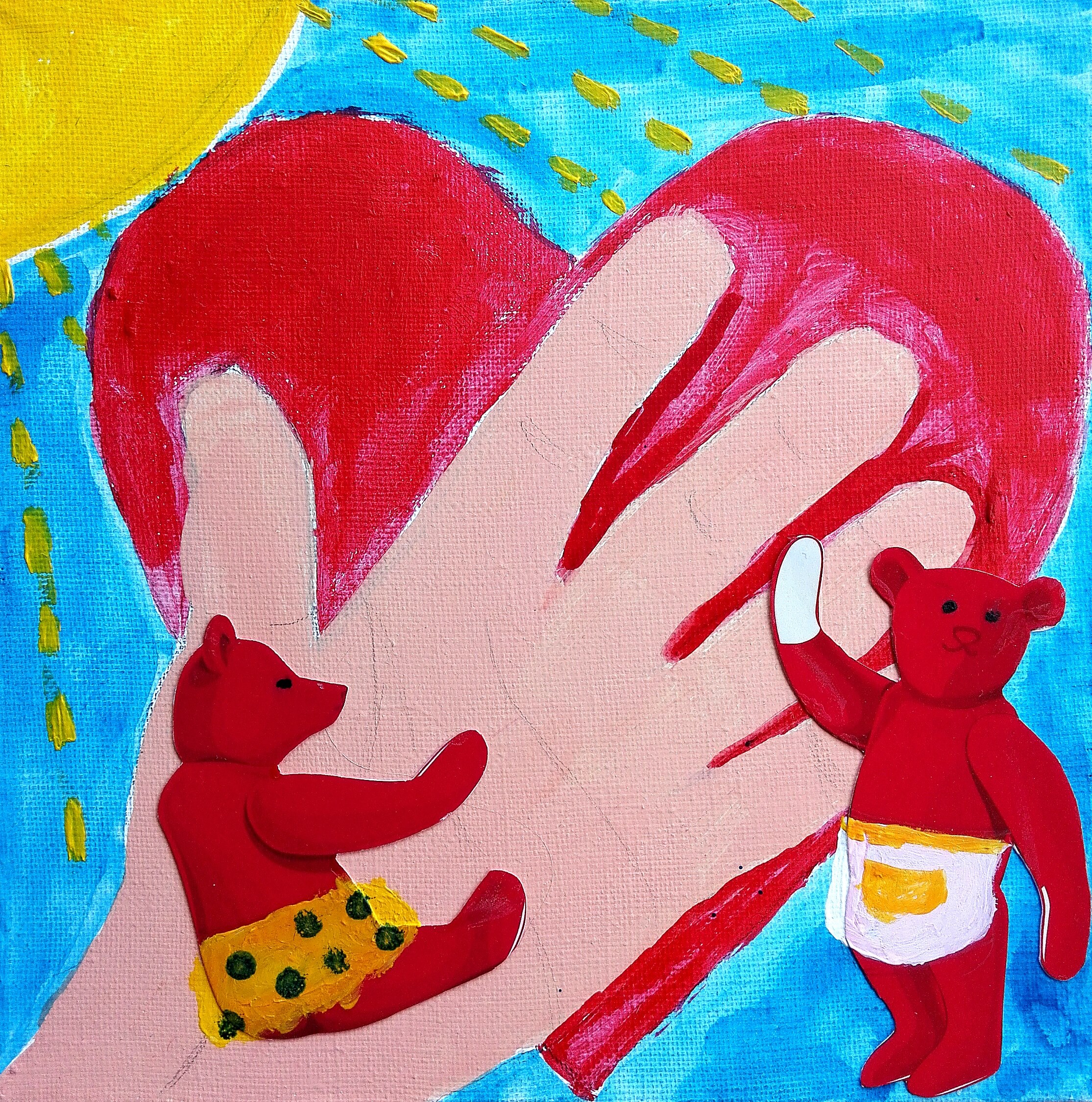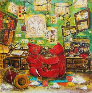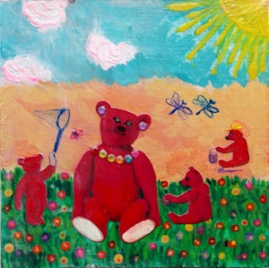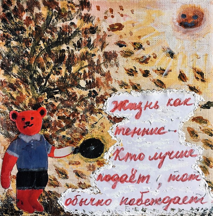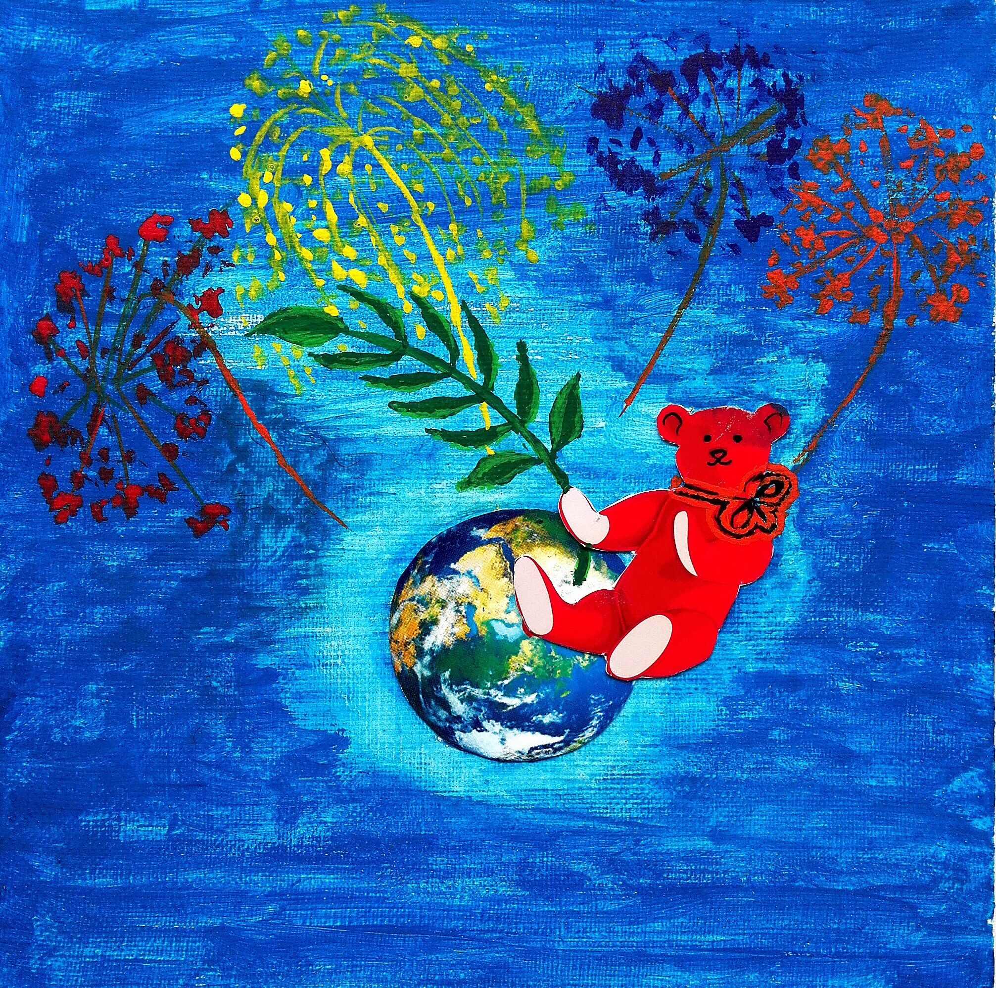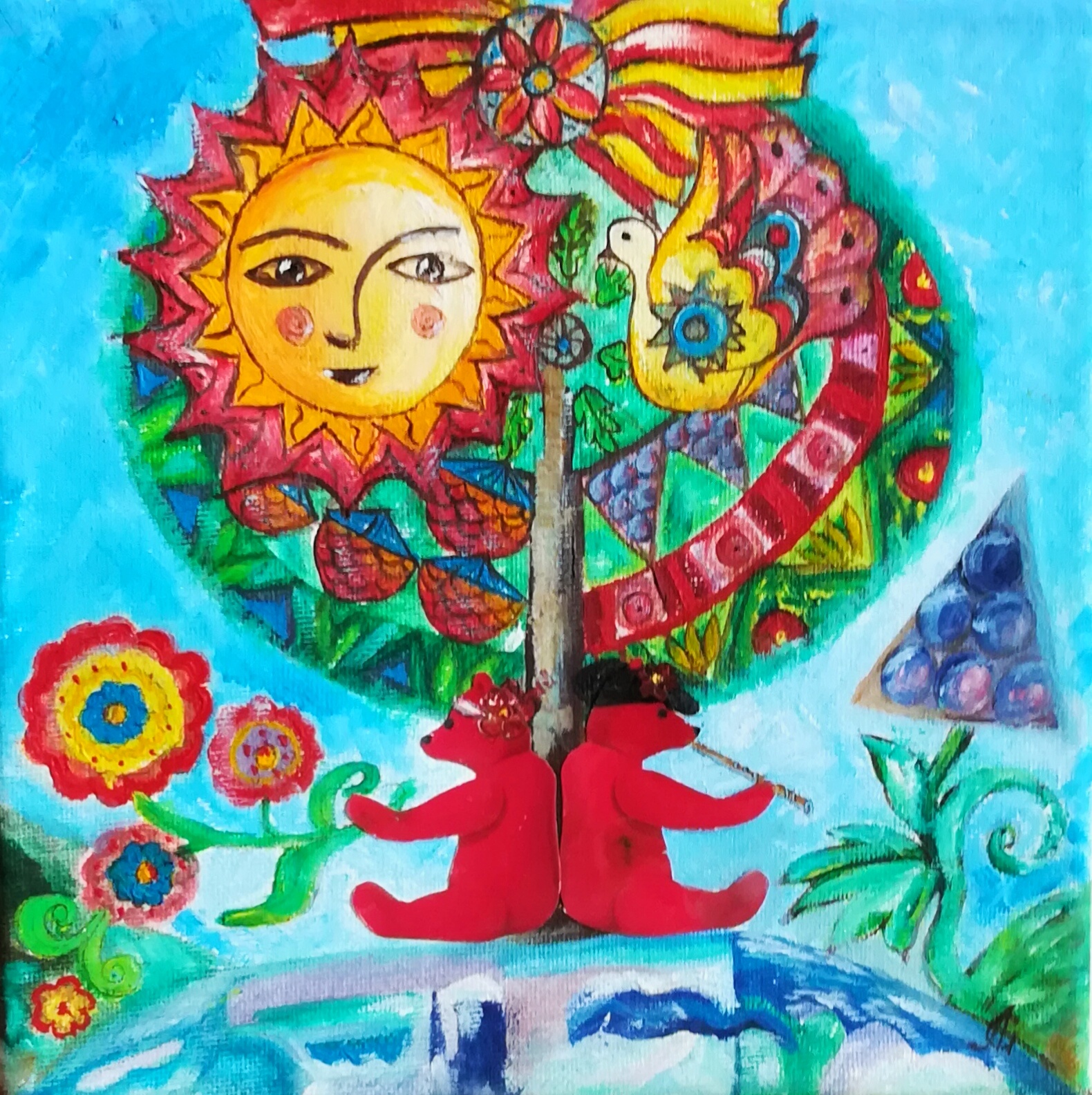 Главный герой всех картин и историй – Красный мишка©, персонаж музея-мастерской «Друг мой мишка» (г. Красногорск) Наташи Усачевой.