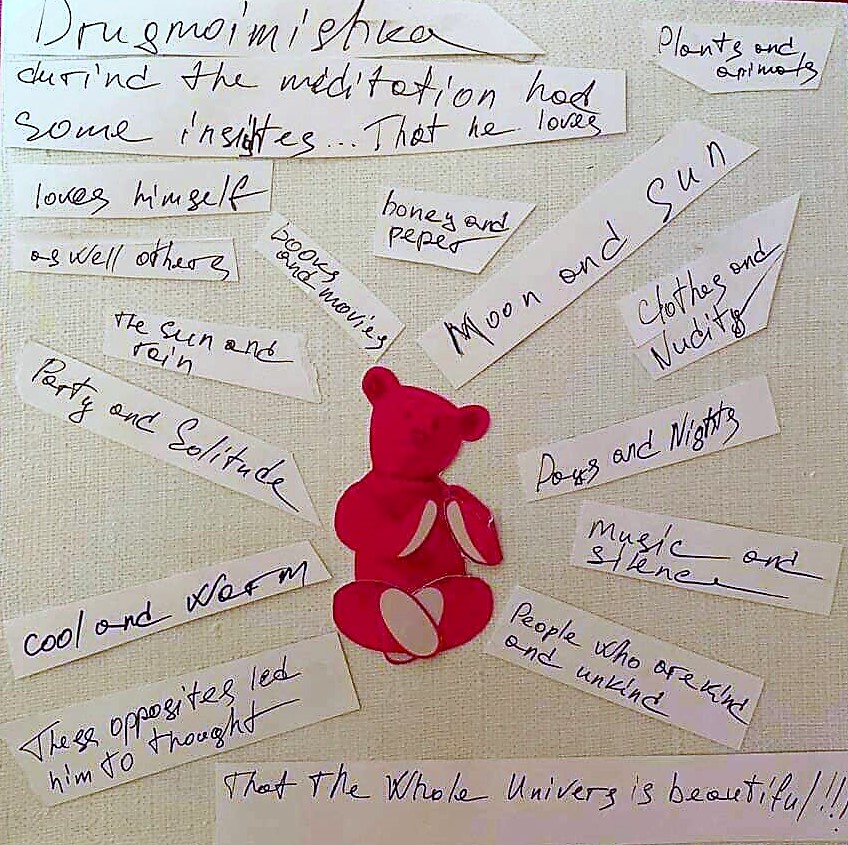 Во время медитации Другмоймишка понял, что любит себя и других, животных и растения, мёд и перец,книги и фильмы, солнце и дождь,вечеринки и…