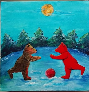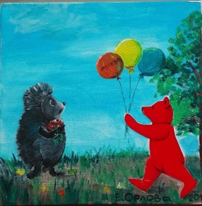 Всегда страшно делать что-то новое, то что ты ещё не умеешь. Например, нарисовать картину с Красным мишкой, которую увидят потом другие…