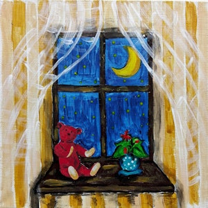 Добрый Красный мишка пробует достучаться до луны, пробует поселиться в ухе, селится в окошке. Он говорит: Я - твои детские мечты. Я хочу…
