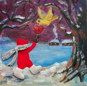 Красный мишка знает, что еще зима и деревья пока - черные, но он уверен, что скоро наступит лето. Он никогда не теряет надежды. Даже от…