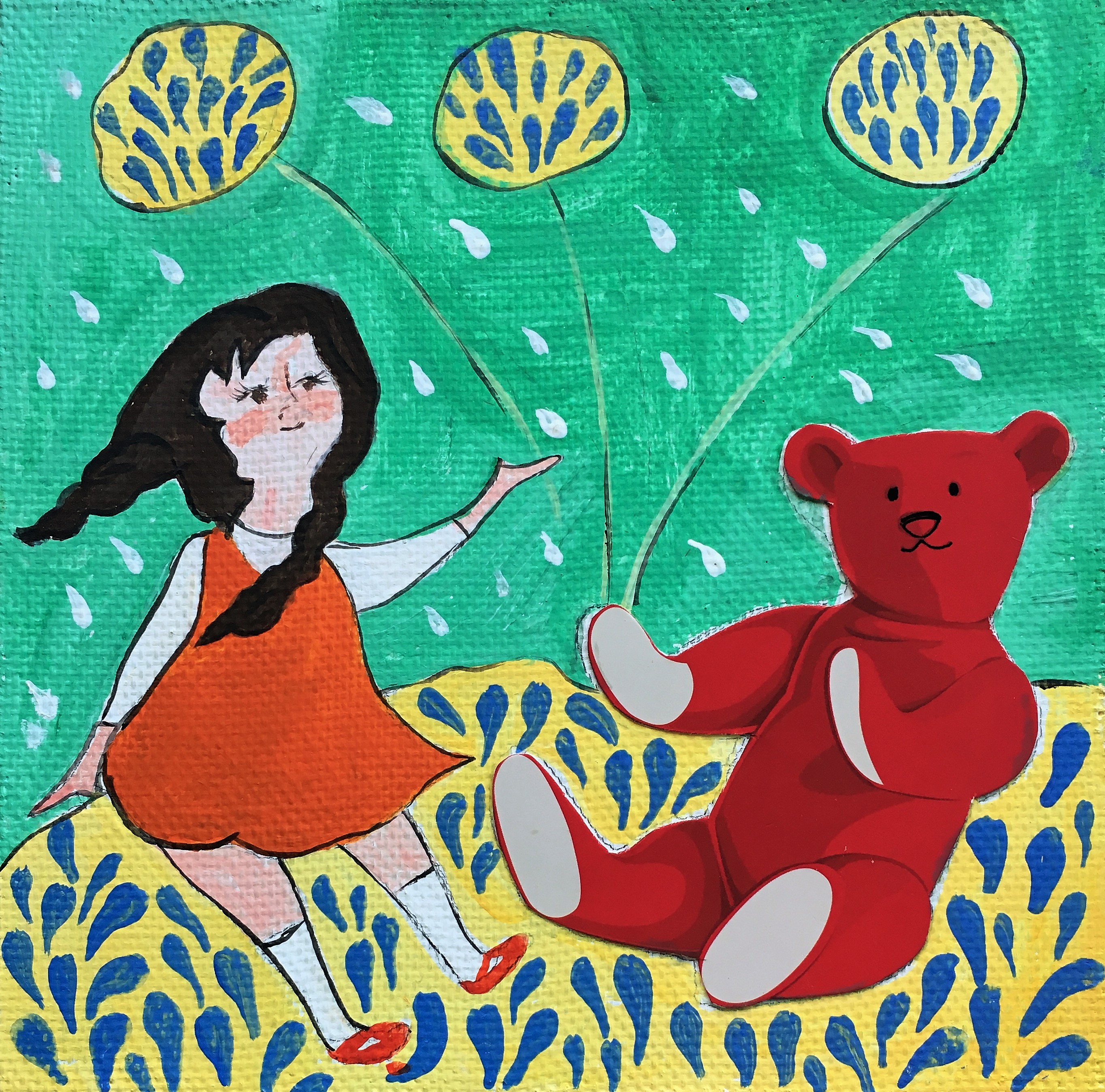 Когда я держала в руках конверт с Красным мишкой, я уже знала, что буду рисовать: маленькую девочку, в платье в горошек, прижимающую…