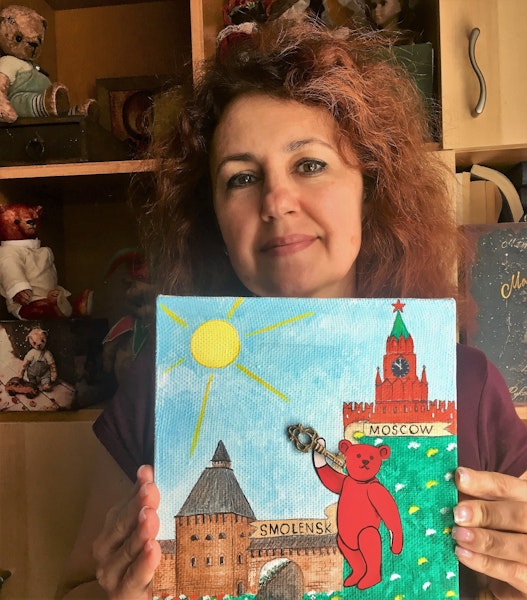 Однажды, в одном из трех древнейших городов Руси - Смоленске, появился необычный путешественник - Красный мишка. Он бродил по старым улицам, любовался храмами, слушал истории и легенды старожилов, пробовал смоленские сладости, которые поставляли когда-то к столам императоров. Мишка с удивлением узнал, что Смоленск издревле называют «город ключ», так как он стоит на страже западных границ русских земель. Не овладев Смоленском, невозможно было подступиться к Москве. Смоленск всегда стойко держал оборону в тяжелейшие времена. Когда Красный мишка засобирался домой, смоляне вручили ему символический ключ. Красный Мишка крепко взял его, помахал жителям лапой и отправился в Москву. Он шел, вспоминал смоленские сказки, легенды о Смолиге, волшебной птице Гамаюн, жевал смоленские конфеКты и думал: "В этот уютный город я обязательно загляну еще!»